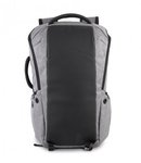 600D polyester. Grab handles - top and side. Padded adjustable shoulder straps with small zip pockets. Sternum strap. Reinforced cut-proof front panel. Main rear zip compartment with TSA combination lock. Padded back panel. Two side zip pockets - left pocket with ear phone cord access and USB port connected to inner power bank holder (inner micro USB cable included). Right pocket with theft-preventing coiled cable. Lower back zip pocket. Internal padded laptop compartment compatible up to 15". Padded tablet sleeve compatible up to 11". Multiple inner pockets. Two detachable zip pouches for cables or accessories. Adjustable straps at base to hold jackets. Integrated rain cover. Capacity 30 litres.