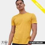 Modern fit. Ribbed collar. Taped neck. Side seams. Twin needle sleeves and hem. Unbranded size label at neckline.