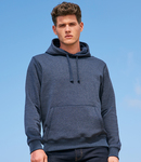 79% cotton/20% polyester/1% viscose. Cotton faced fabric. Brushed back fleece. Drop shoulder style. Lined hood with self colour drawcord. Taped neck. Locker patch. 2x2 ribbed cuffs and hem. Front pouch pocket. Unbranded size label at neckline.