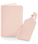 Saffiano fine grain. Soft touch lining. Internal foam padding. Luggage tag with high shine gold metal buckle. Passport/travel card holder. Tear out labels.