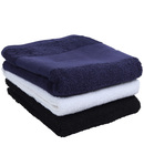 100% cotton. Luxurious thick pile terry towelling. Flat weave border (11cm). Excellent absorbency qualities. Hanging loop.