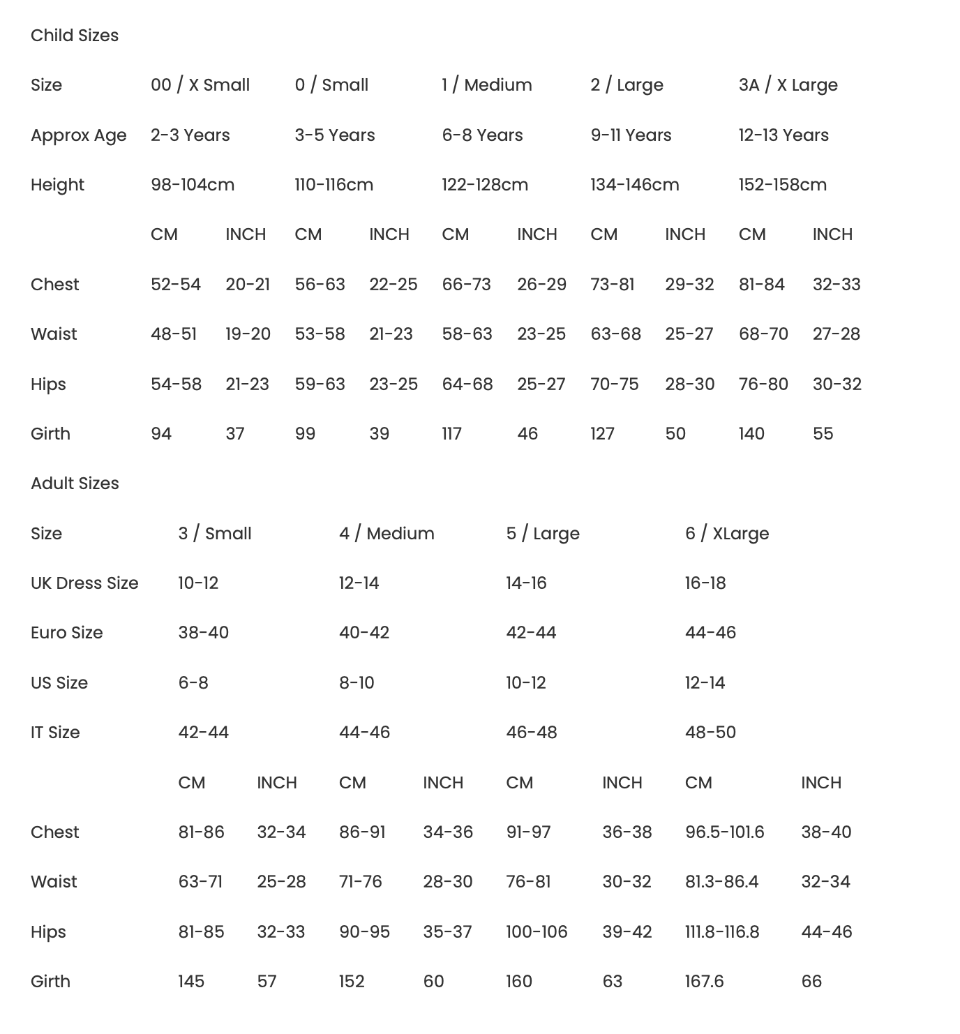 Size 0 Size 1 Size 2 Size 3A Size 3 Size 4 Size 5 Size 6