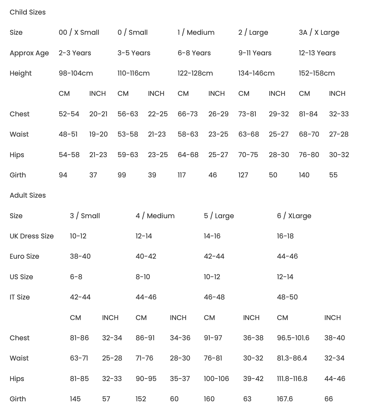 Size 00 Size 0 Size 1 Size 2 Size 3A Size 3