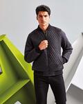 Slim fit, lightweight jacket, Diamond shaped quilting, Bomber style jacket, Elasticated ribbed knit collar, cuffs and hem, Full zip through bungee cord style zip, Interchangeable zip colours in Orange and Black, Two side slit pockets and internal zip pocket, Shower resistant, Rebrandable, Wash at 30 degrees