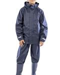 Jacket: full front zip fastening, two spacious front pockets, Fully taped seams, reflective tape on cuffs, Inner elasticated storm cuff, stud closing front storm flap, Integrated elasticated hood, mesh ventilation on back, Trousers: elasticated waist band, Two side slots to access garment being worn underneath, Adjustable snap closing ankles on trousers, Fully taped seams, Height: 98-104cm 110-116cm 122-128cm 134-140cm 146-152cm, Age: 3/4yrs 5/6yrs 7/8yrs 9/10yrs 11/12yrs
