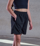 Unbranded size tab only in waist. Elasticated waistband with inner drawcord. Mesh lining inner shorts. Two side pockets.